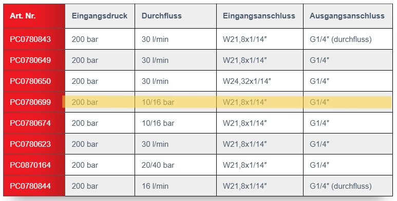 • Leistungsstarker Druckminderer für Argon/ Argon Gemische; 200bar/10bar W21,8×1/14“ (PC0780699)