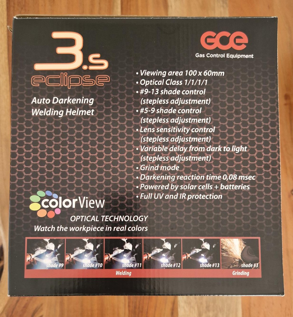 Schweißmodus: 9-13 DIN Stufen (Empfindlichkeit – Aufhellzeit)